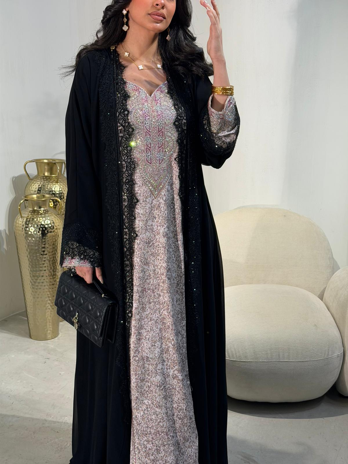 نوع القماش: شيفون مبطن قصة العباية: كلوش